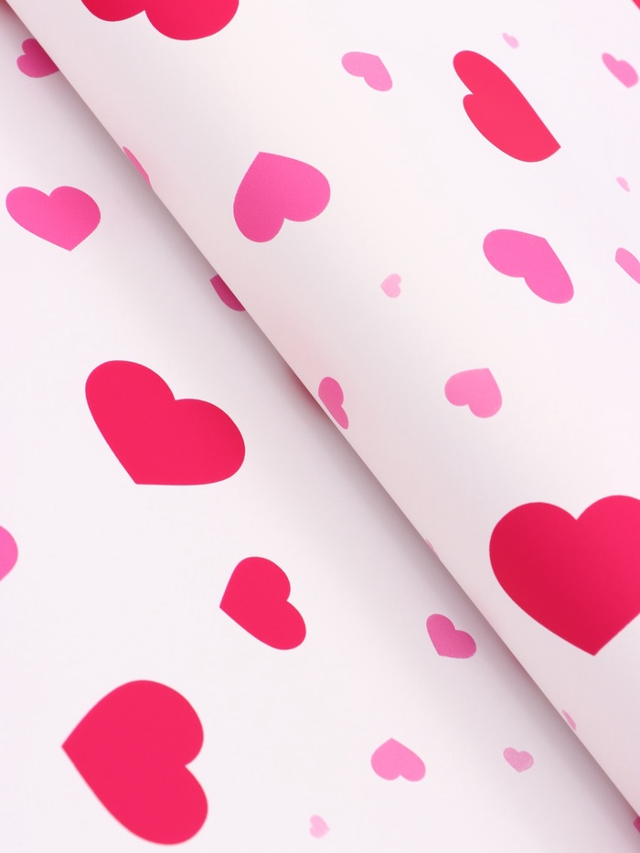 Пленка для цветов, «Сердца на белом», барби, 57×57 см