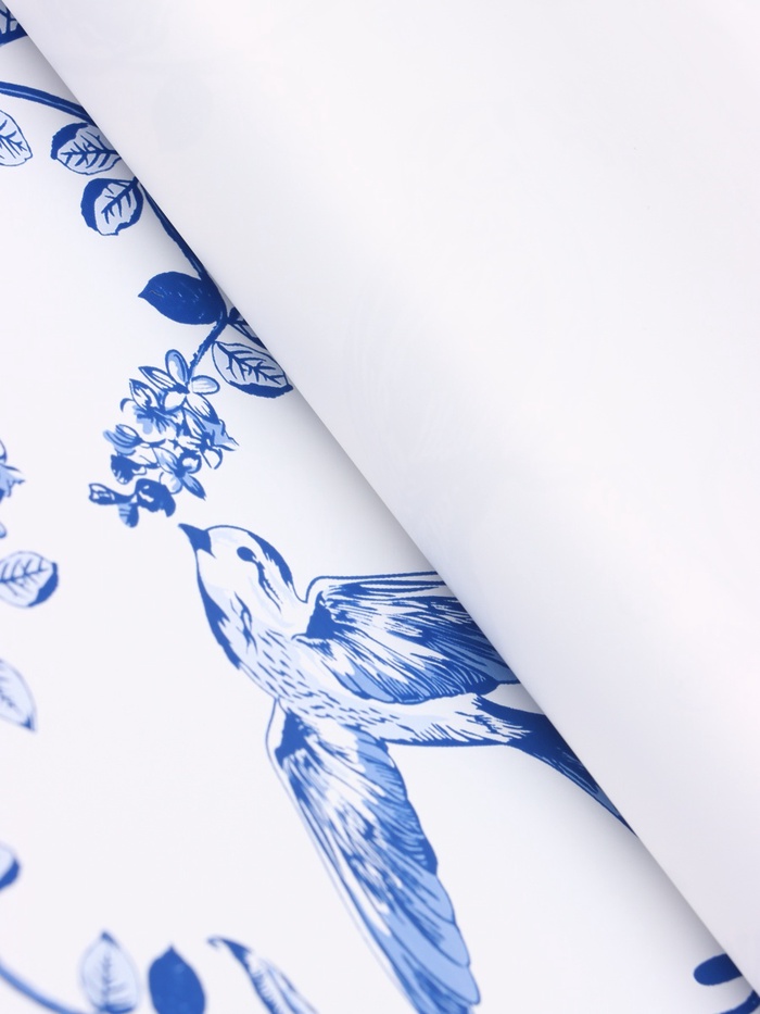 - Светлый и воздушный дизайн: Рисунок из цветов и листьев выполнен в голубых тонах на чистом белом фоне. Это создаёт эффект лёгкости, простора и чистоты, ассоциируясь с первыми весенними днями, ясным небом и росой.