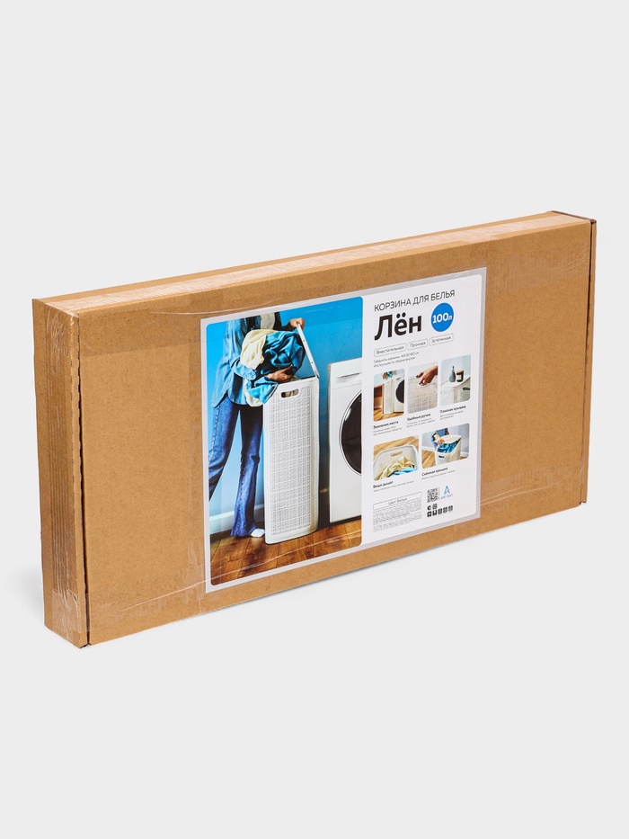 Технические характеристики Плетёная корзина для белья с крышкой «Лён», 100 л, 43×32×80 см, белая