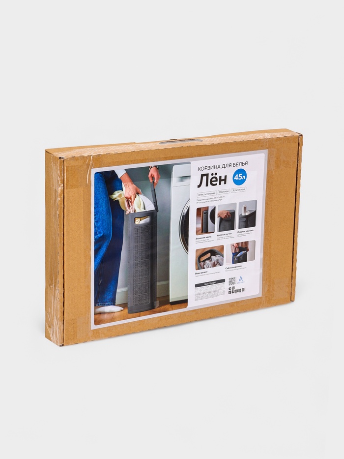 Технические характеристики Плетёная корзина для белья с крышкой «Лён», 45 л, 43×20×60 см, графит