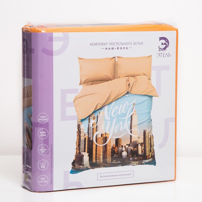 Постельное бельё "Этель" евро Нью-Йорк 200х217 см, 260*240 см, 50х70 см - 2 шт, мако-сатин