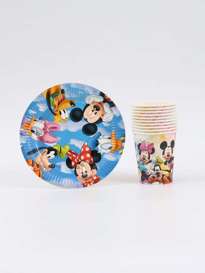 Праздничный набор посуды для детского торжества в стиле Микки Мауса и его друзей. В комплекте есть всё необходимое для сервировки стола на 10 гостей. Яркий дизайн с любимыми персонажами создаст праздничное настроение и порадует детей.