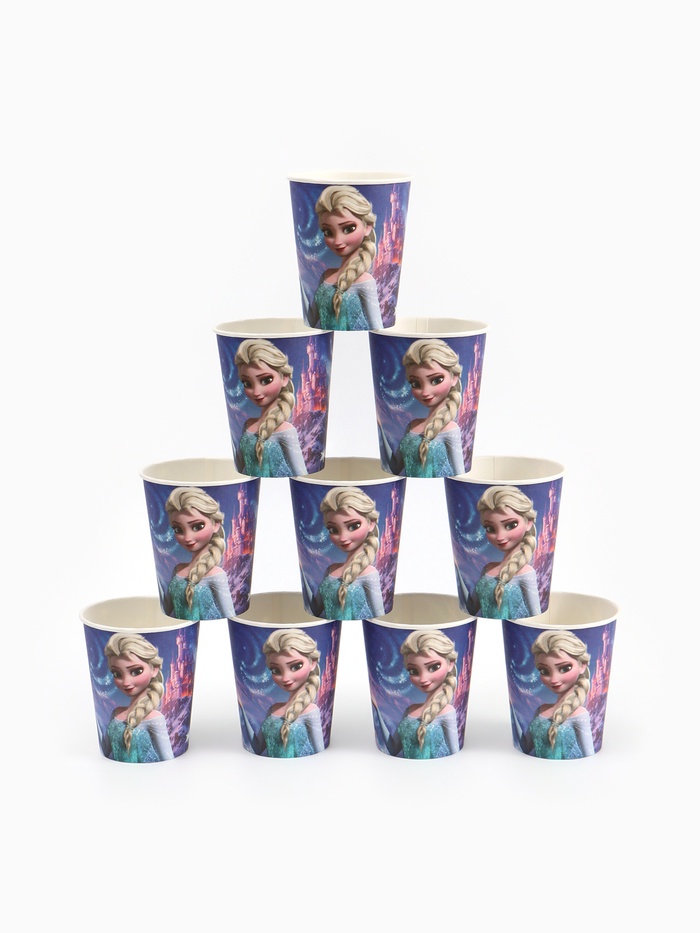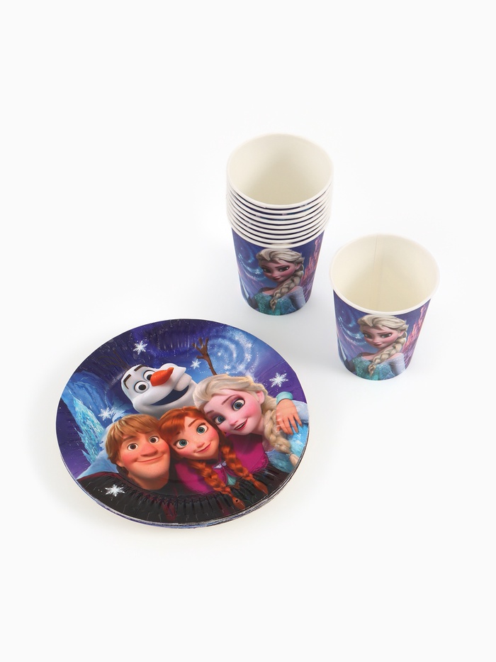 Технические характеристики Посуда одноразовая бумажная на 10 персон: стаканы, тарелки, скатерть, Холодное сердце
