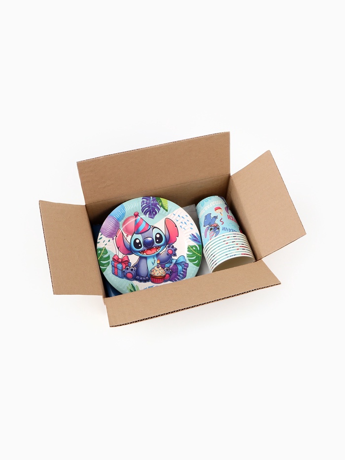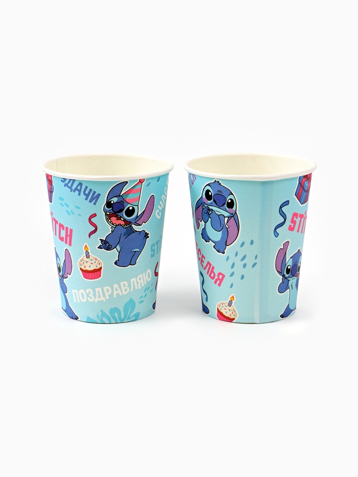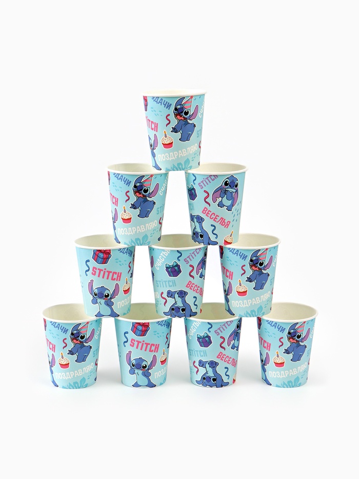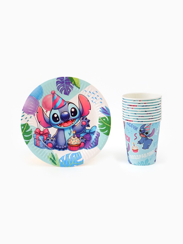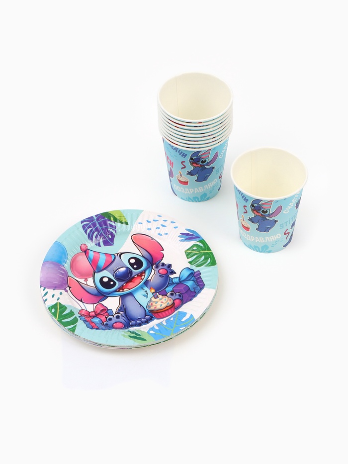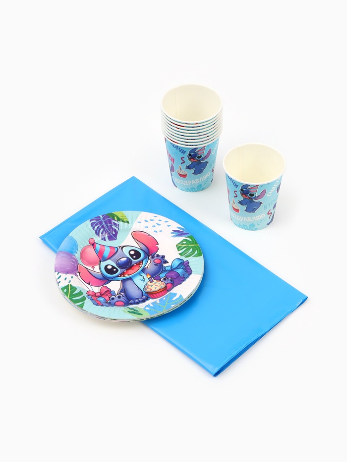 Технические характеристики Посуда одноразовая бумажная на 10 персон: стаканы, тарелки, скатерть, Стич