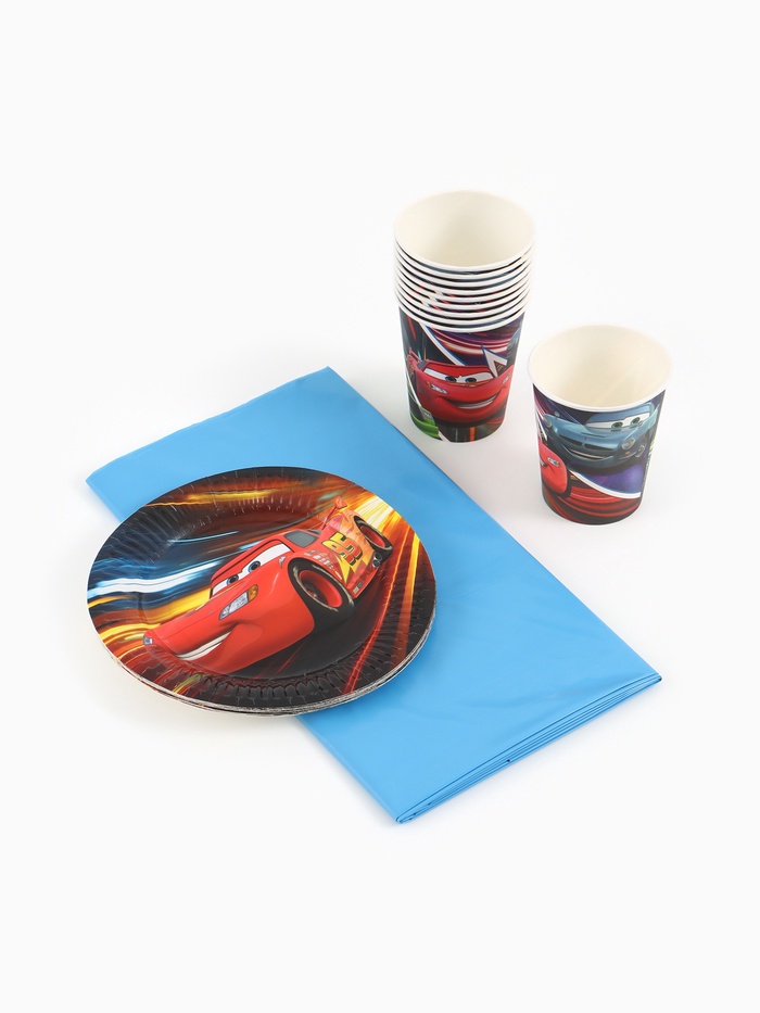 Одноразовая бумажная посуда на 10 персон, «Тачки» — яркий и атмосферный комплект для оформления детского праздника в стиле культового мультфильма! В набор входят: тарелки, стаканы и скатерть, выполненные из картона с печатью: на изделиях — Молния Маккуин, Мэтр, Салли, Флорида и другие герои в динамичных гоночных сценах, на фоне трасс. Подходят для прохладных и тёплых блюд и напитков, удобны в использовании и легко утилизируются.