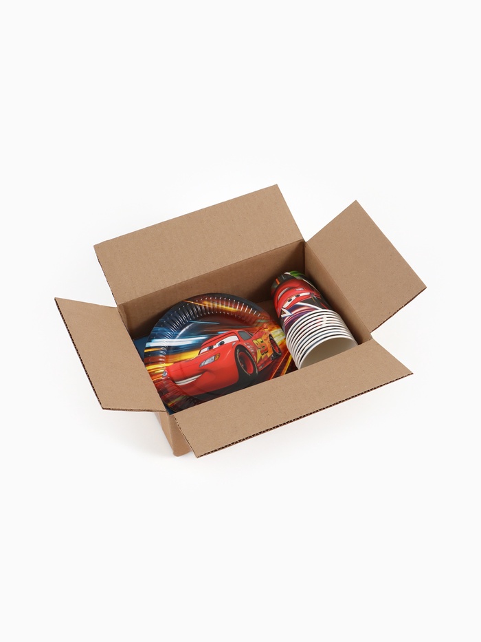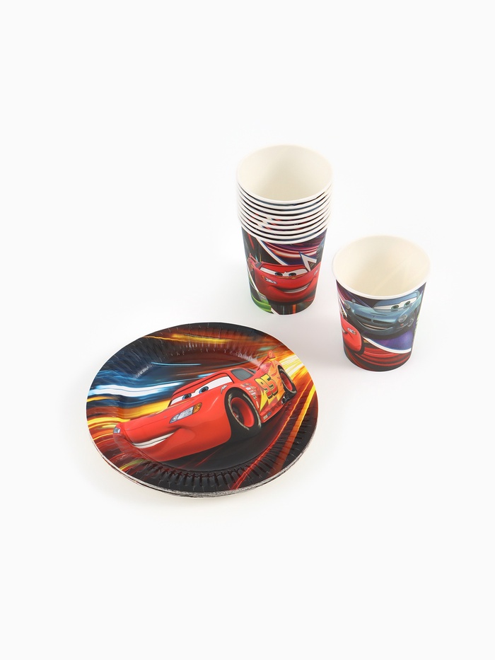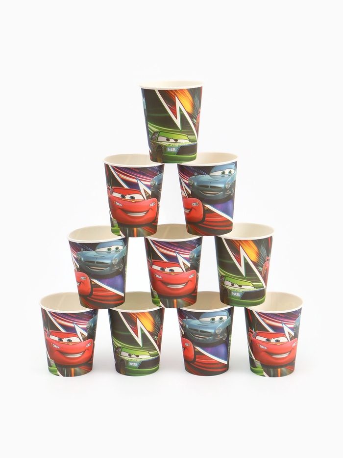 Технические характеристики Посуда одноразовая бумажная на 10 персон: стаканы, тарелки, скатерть, Тачки