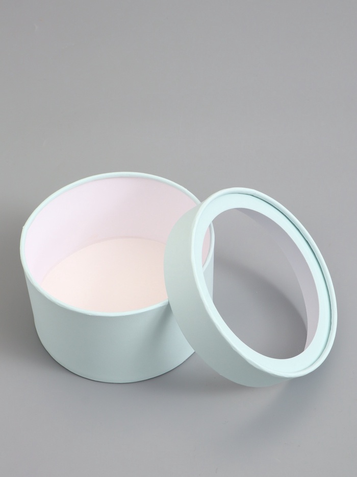Подарочная коробка круглая, лагуна, завальцованная с окном, 16×11 см