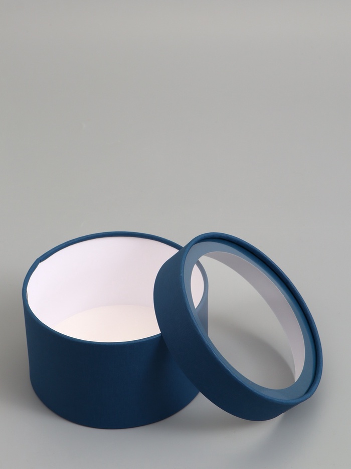 Подарочная коробка круглая, морской, завальцованная с окном, 16×11 см