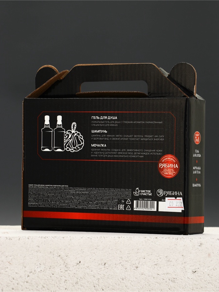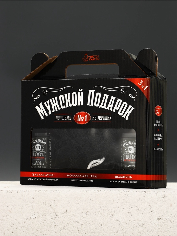 Технические характеристики Подарочный набор «№1», гель для душа виски, шампунь для волос, мочалка для тела