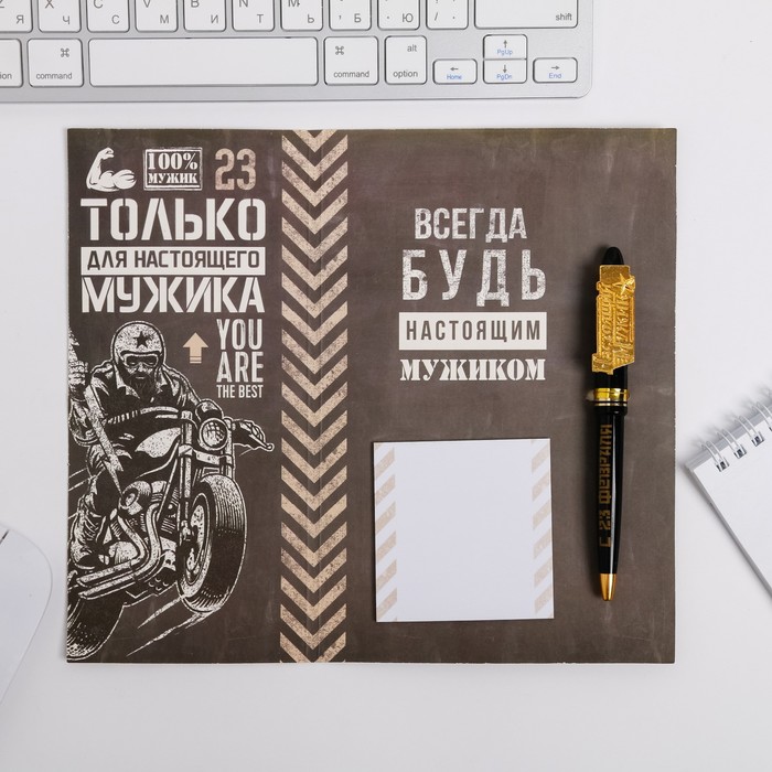 Подарочный набор «23 февраля: Только для настоящего мужика»: блок стикеров и ручка пластик