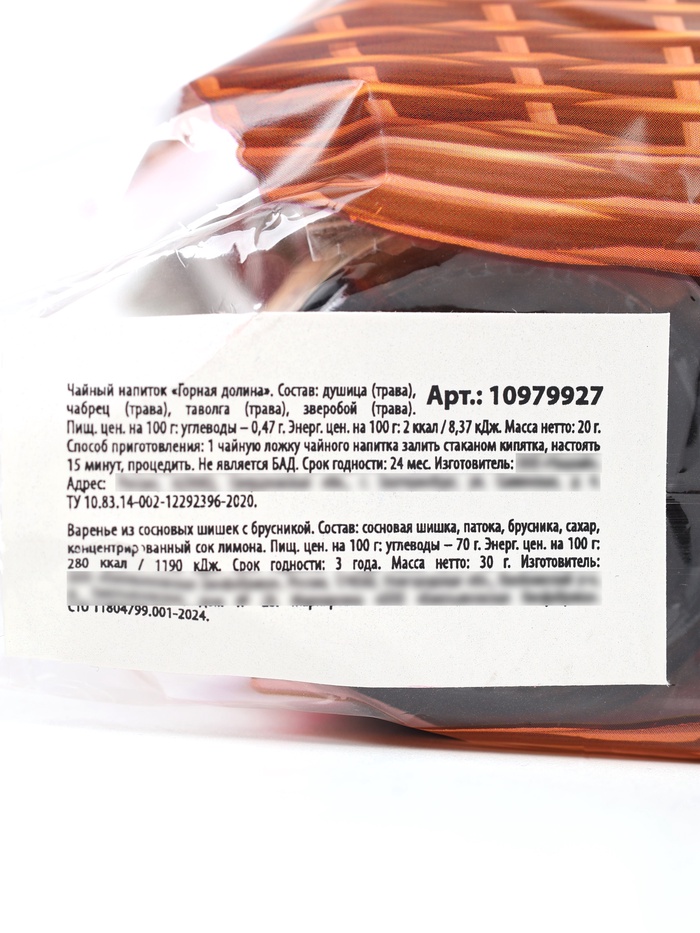 | Составляющие набора | Бальзам (настойка); Варенье; Чай |