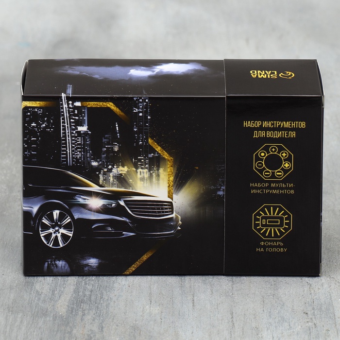 Подарочный набор автоаксессуаров 2 в 1 «Золотой водитель»: мультитул и фонарик на голову