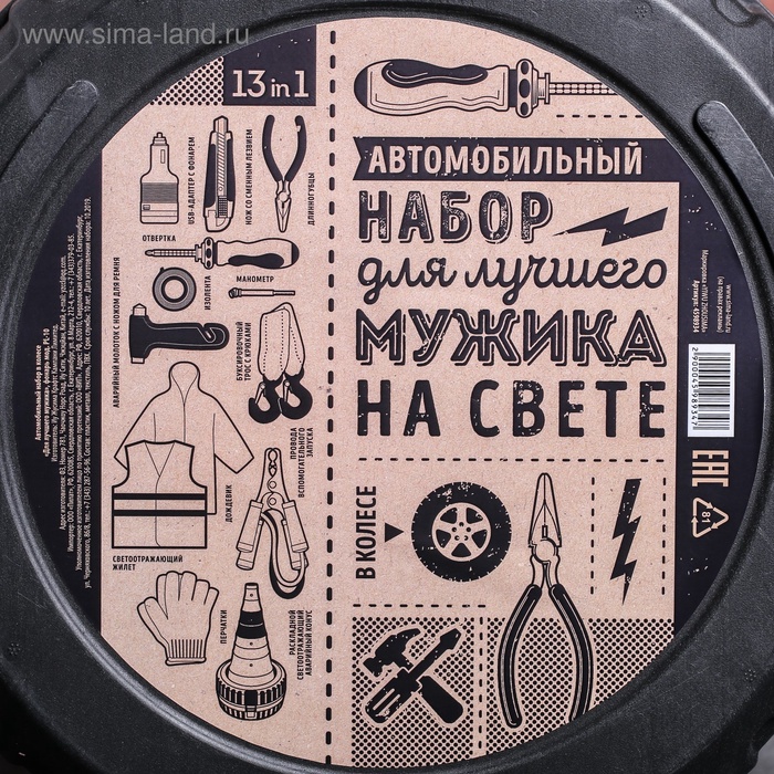 Подарочный набор автомобильный в колесе «Для лучшего мужика», 13 предметов