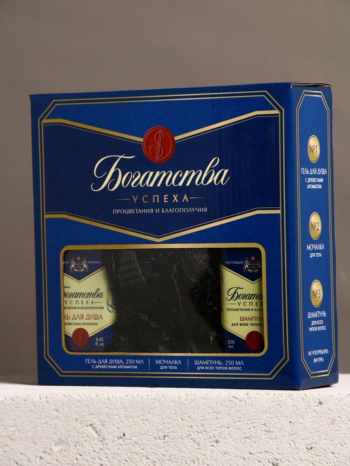 Подарочный набор «Богатства»: гель для душа, шампунь для волос, мочалка для тела, Чистое счастье