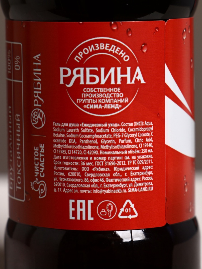 Технические характеристики Подарочный набор «Для душа и души», гель для душа во флаконе виски и гель для душа кола, 2×250 мл, Чистое счастье