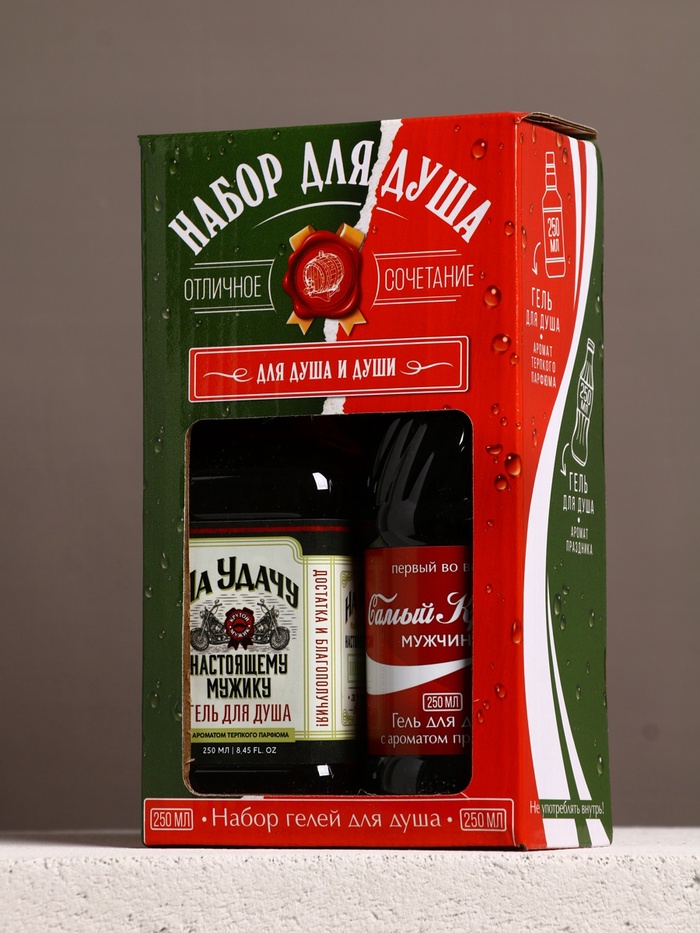 Подарочный набор «Для душа и души», гель для душа во флаконе виски и гель для душа кола, 2×250 мл, Чистое счастье