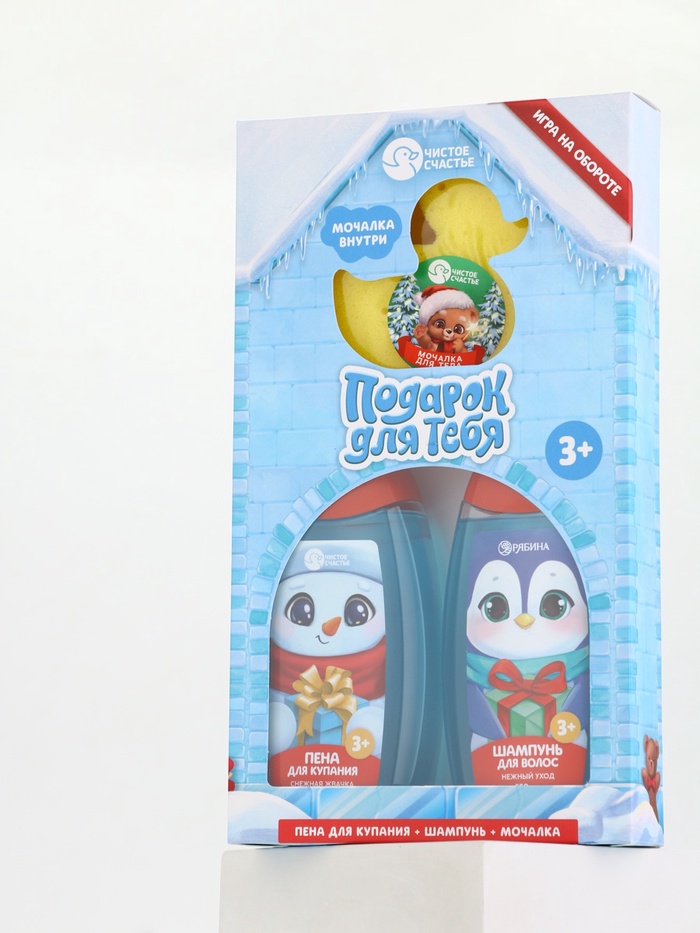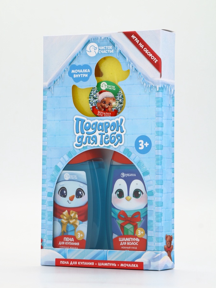 Подарочный набор для мальчика «Для тебя»: пена для купания, шампунь для волос и мочалка утка, Чистое счастье