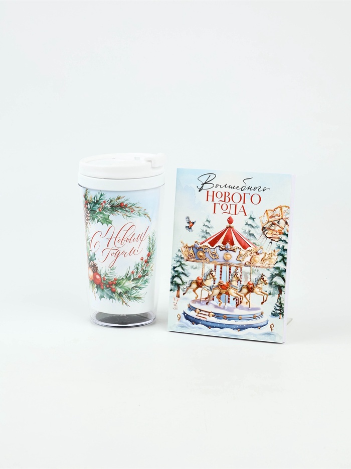 Подарочный набор: ежедневник А6 80 листов и термостакан 250 мл "Карусель"