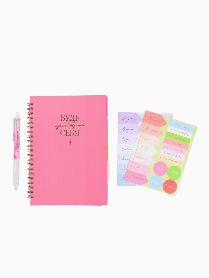 | Составляющие набора | Ежедневник; Наклейки; Ручка |
