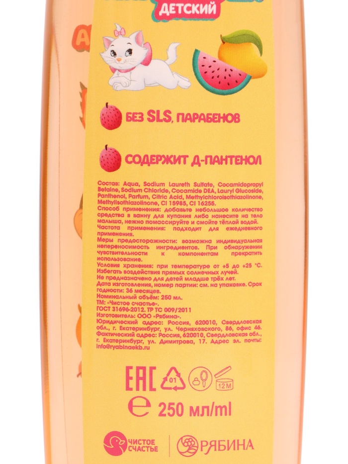 Технические характеристики Подарочный набор: гель для душа 250 мл, шампунь 250 мл, Кошечка Мари