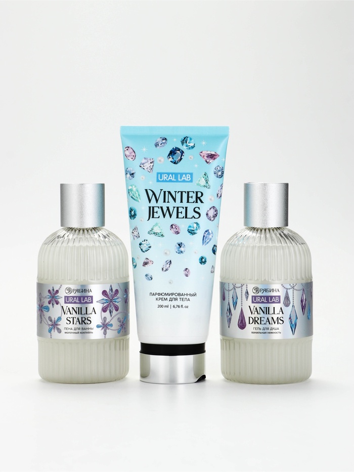 Технические характеристики Подарочный набор: гель для душа 300 мл, парфюмированный крем для тела и пена для ванны 300 мл, URAL LAB