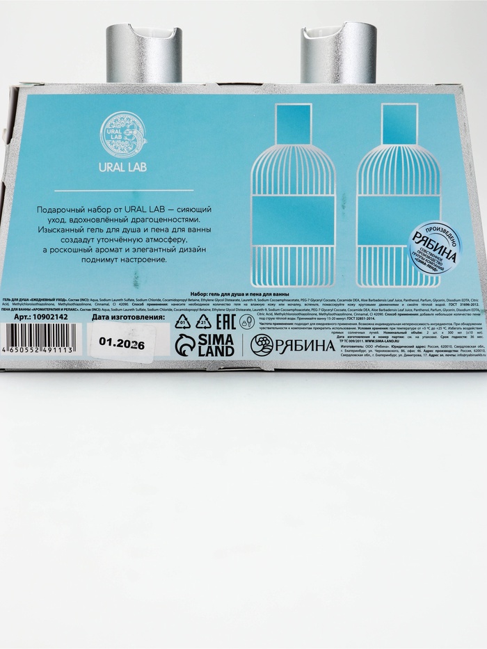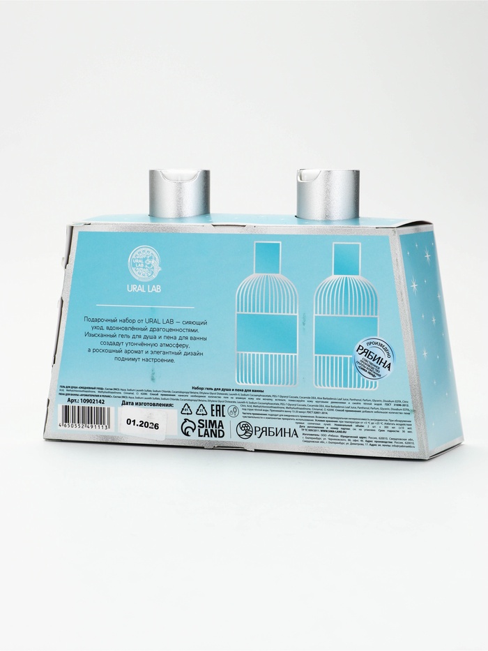 Технические характеристики Подарочный набор: гель для душа 300 мл, пена для ванны 300 мл, URAL LAB