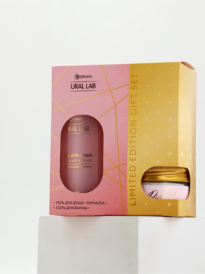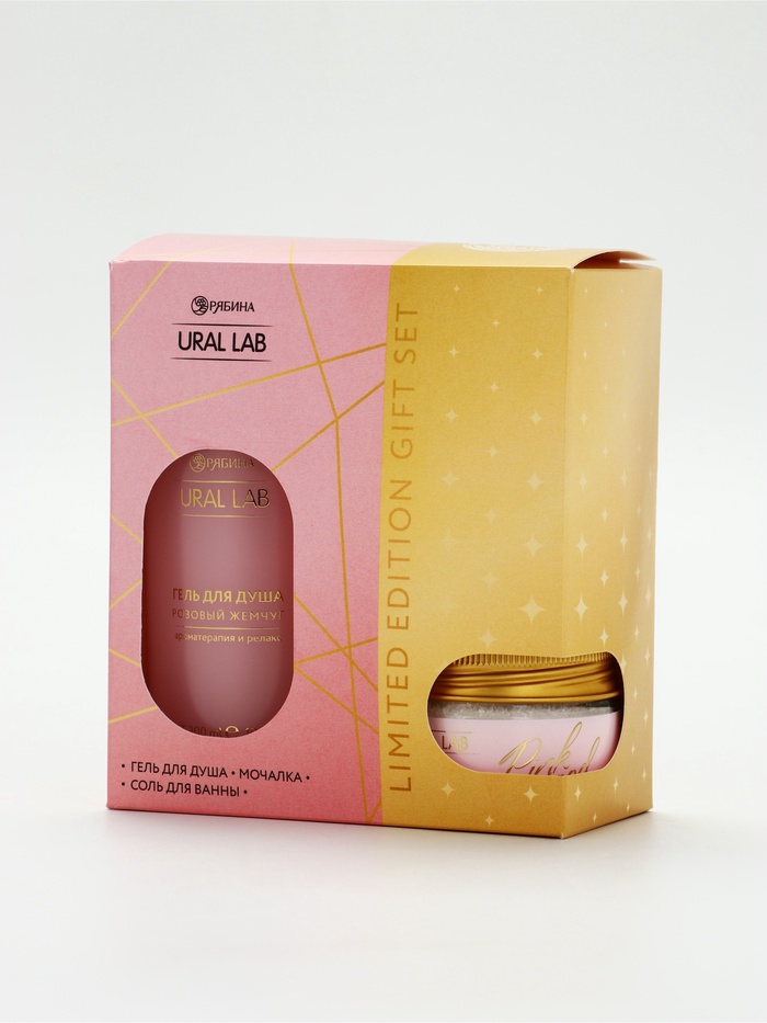Подарочный набор: гель для душа, соль в банке и мочалка ракушка, URAL LAB