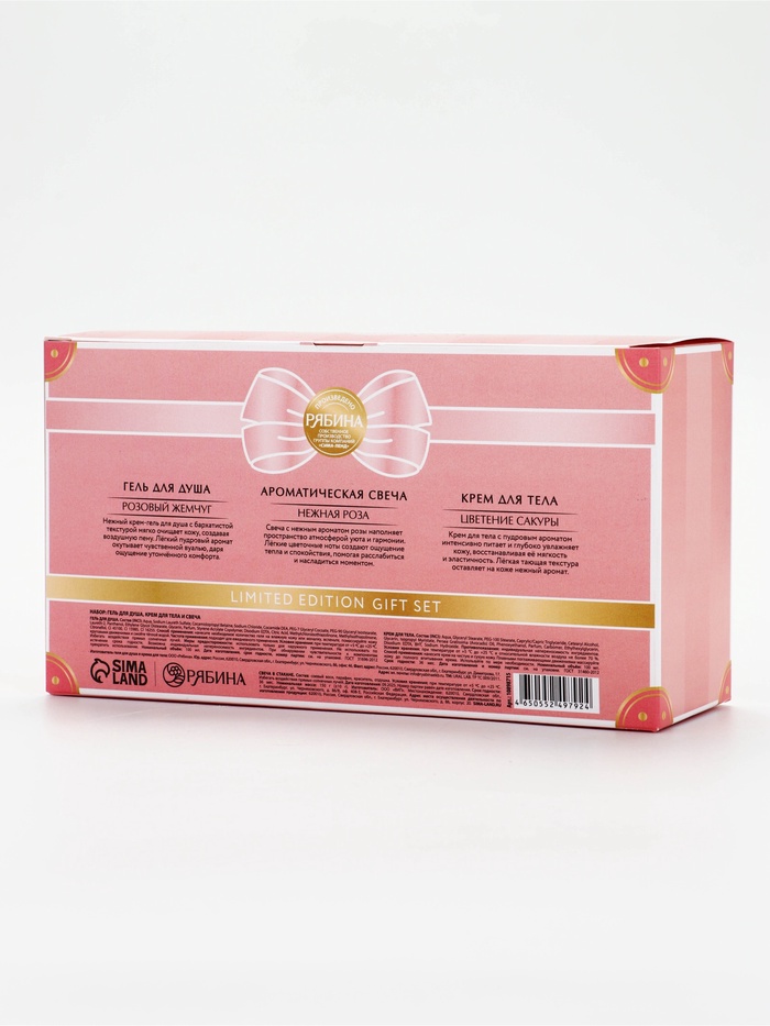 | Составляющие набора | Гель для душа; Крем для тела; Свеча |
