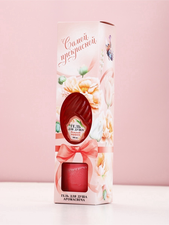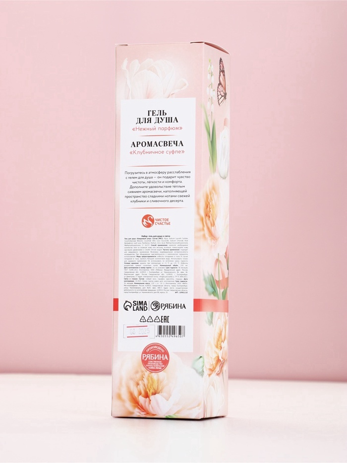 Технические характеристики Подарочный набор: гель для душа мондоро и свеча, аромат нежный парфюм, Чистое Счастье