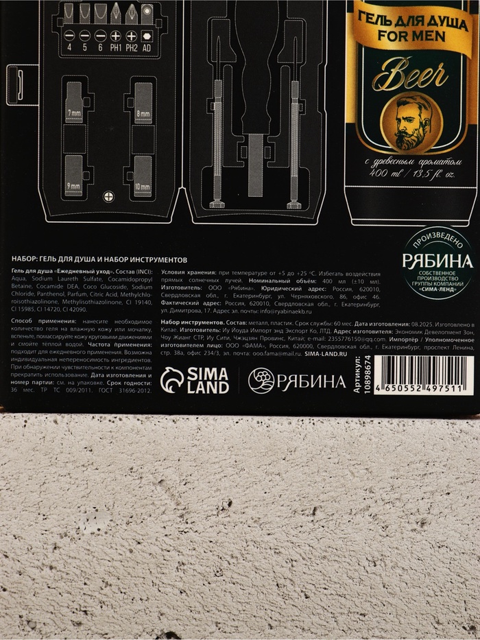 Технические характеристики Подарочный набор: гель для душа пиво 400 мл и набор инструментов