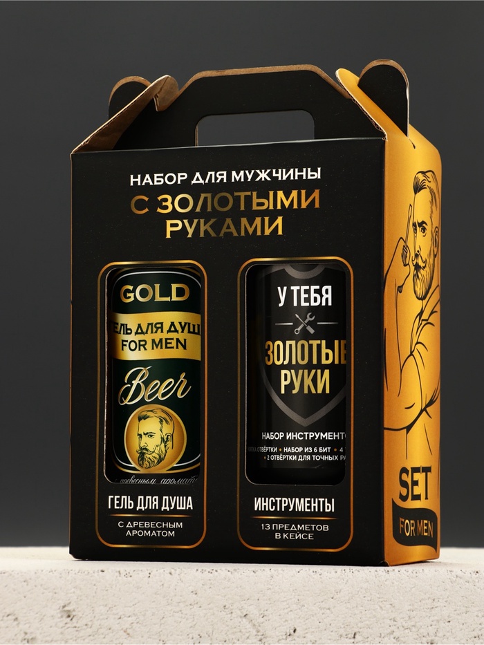 Подарочный набор: гель для душа пиво 400 мл и набор инструментов