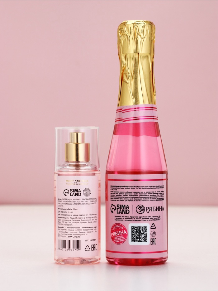 Подарочный набор: гель для душа шампанское и мист для тела, Чистое Счастье