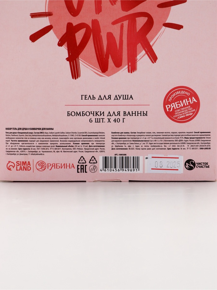 | Составляющие набора | Бомбочка для ванн; Гель для душа |