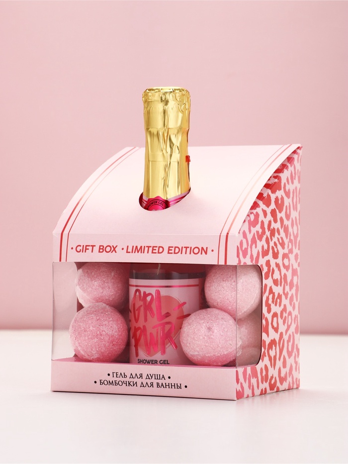 Подарочный набор GRL, гель для душа шампанское и бомбочки для ванны, Чистое Счастье