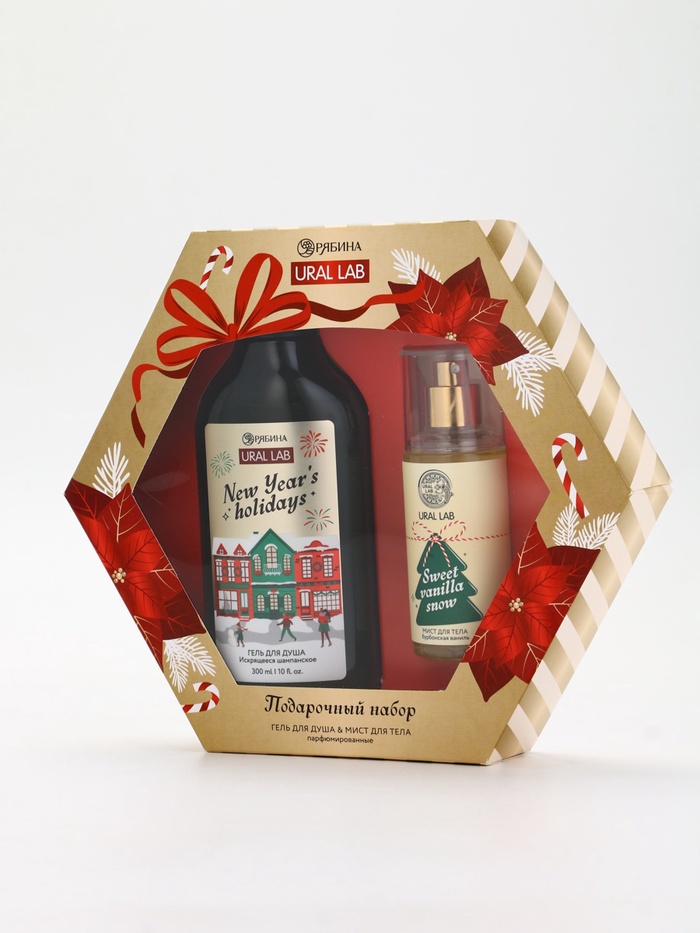 Подарочный набор Happy New Year: гель для душа и мист для тела, белый, URAL LAB