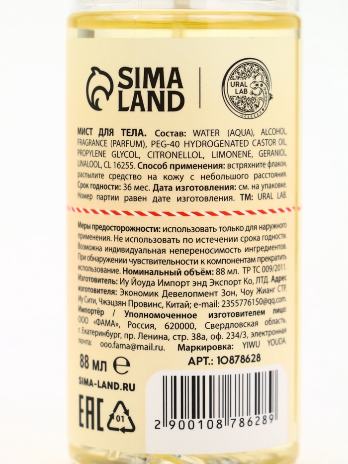 Технические характеристики Подарочный набор Happy New Year: гель для душа и мист для тела, белый, URAL LAB