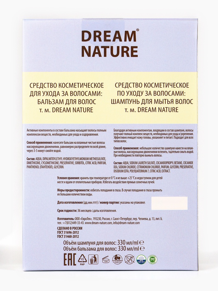 Подарочный набор женский DREAM NATURE Diva, шампунь для волос и бальзам для волос по 330 мл