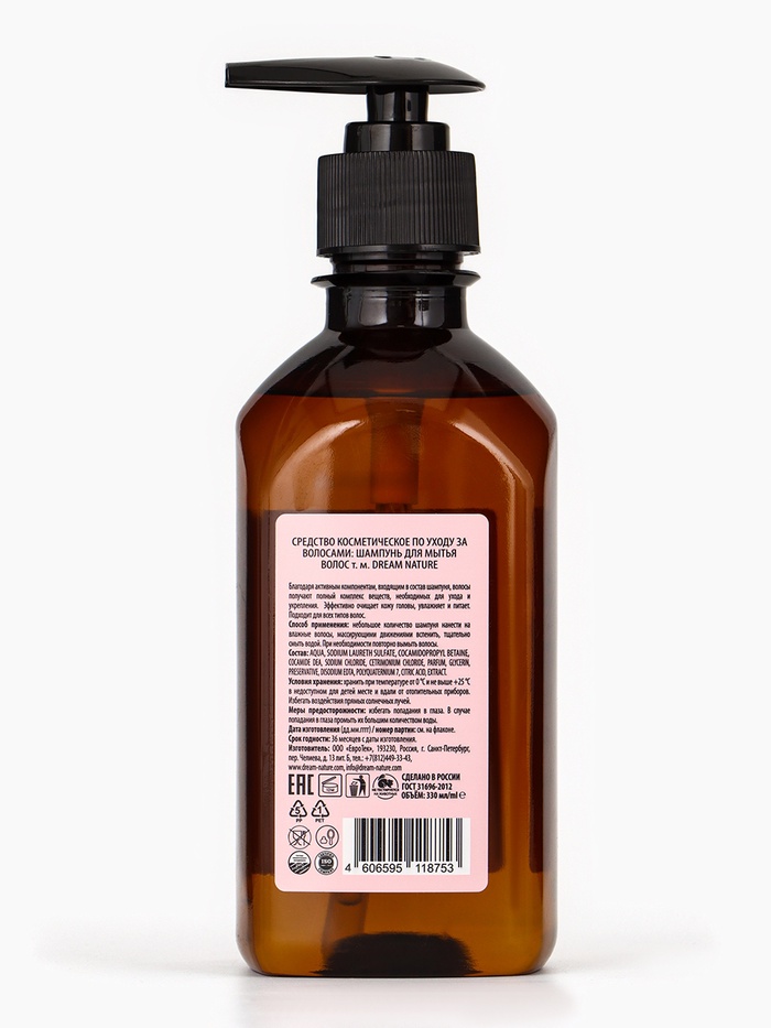 Шампунь 330 мл мягко очищает волосы и кожу головы, удаляет загрязнения и излишки себума, придаёт волосам естественный объём и блеск. Формула шампуня насыщена питательными компонентами, которые укрепляют волосы от корней до кончиков, делая их более эластичными и послушными.