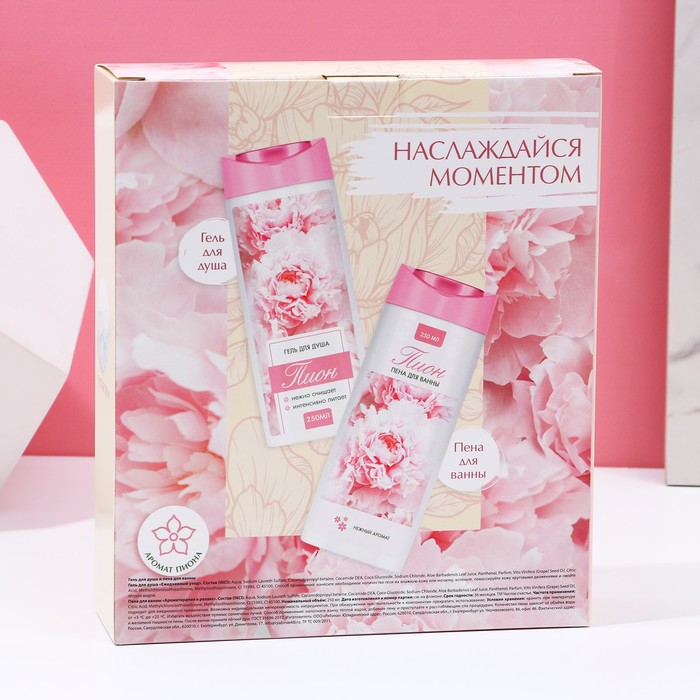 Подарочный набор косметики «Наслаждайся моментом», гель для душа и пена для ванны, 2×250 мл, ЧИСТОЕ СЧАСТЬЕ