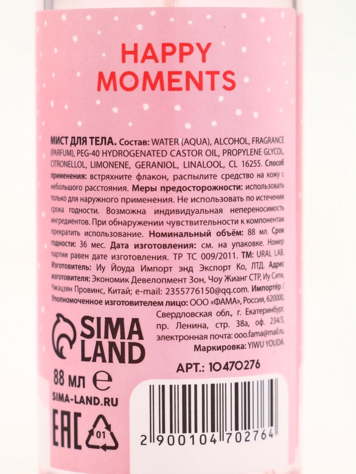 | Составляющие набора | Гель для душа; Мист |