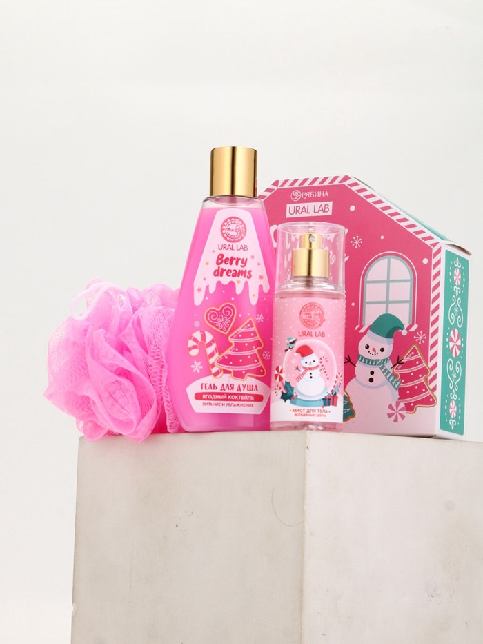 Подарочный набор новогодний «Счастья в Новом году», гель для душа, мочалка и мист, URAL LAB