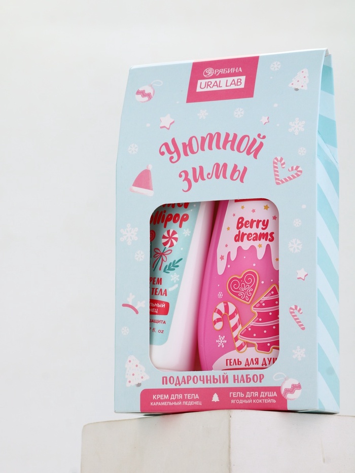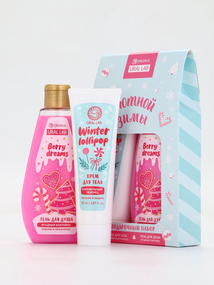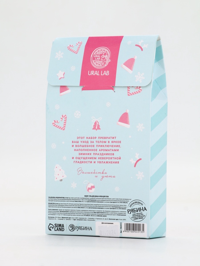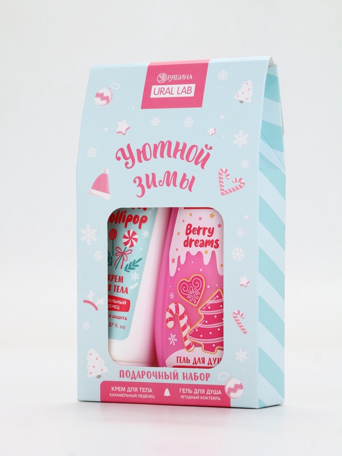 Технические характеристики Подарочный набор косметики «Уютной зимы», гель для душа 200 мл и крем для тела, аромат карамельного леденца, URAL LAB