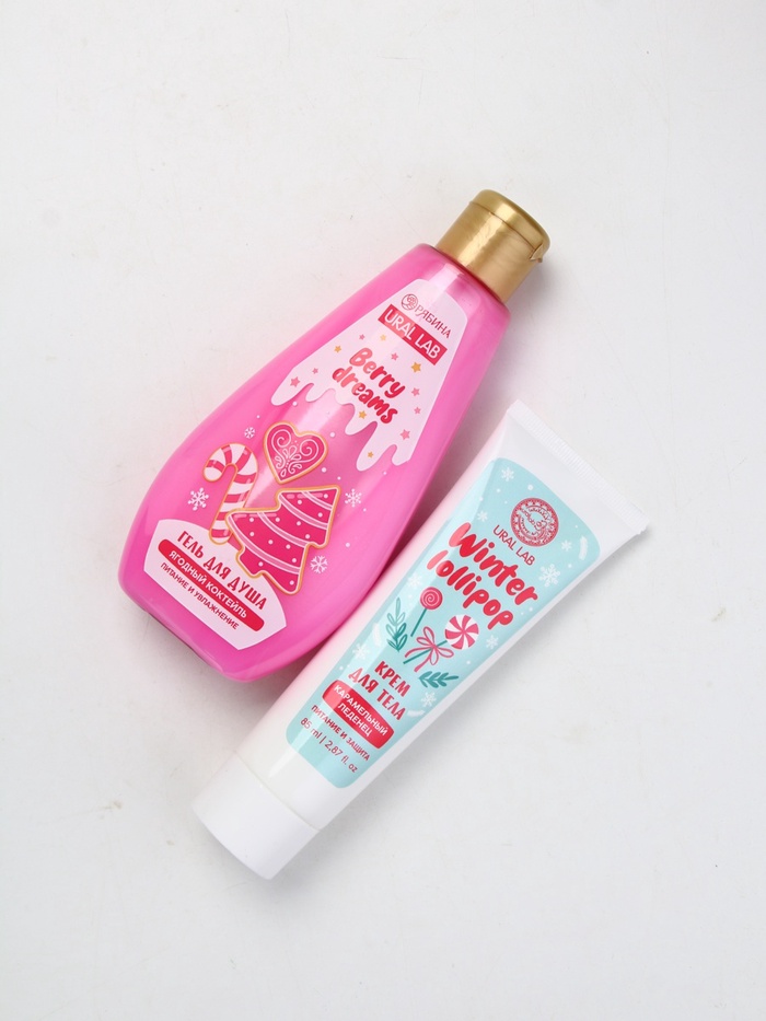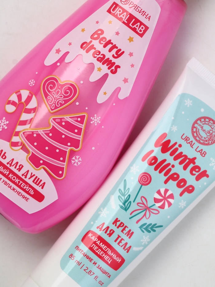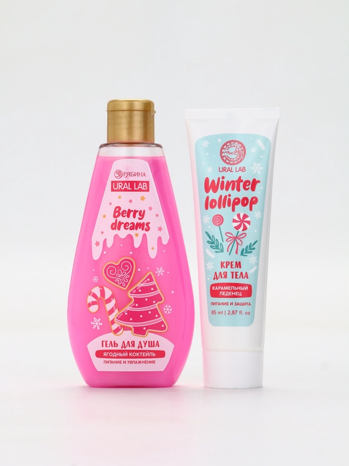 Подарочный набор косметики «Уютной зимы», гель для душа 200 мл и крем для тела, аромат карамельного леденца, URAL LAB