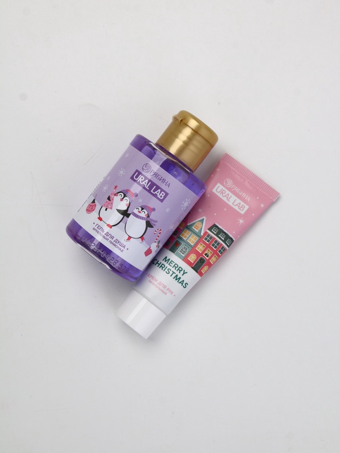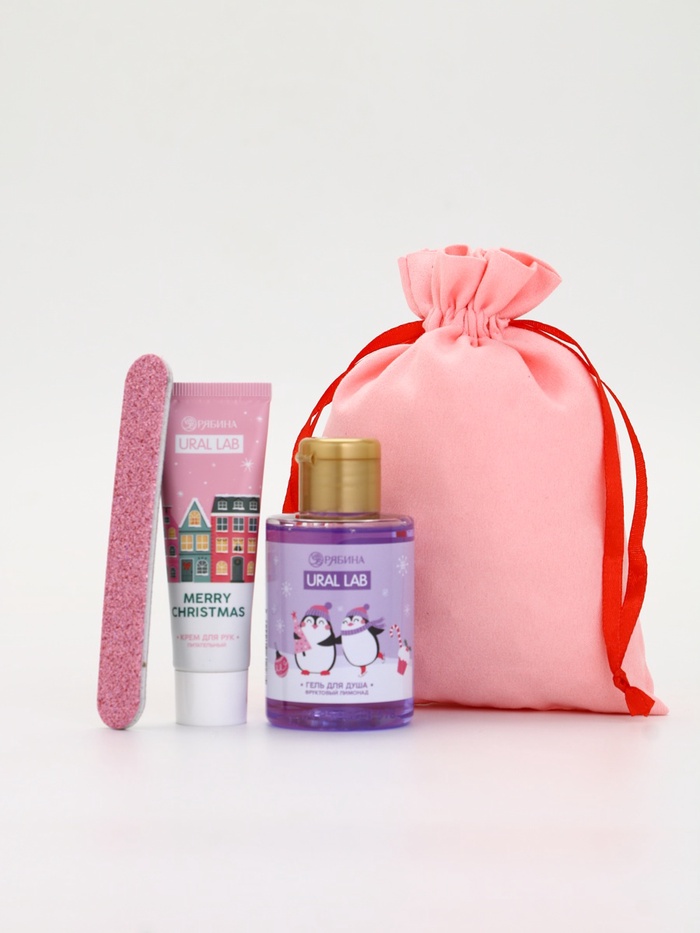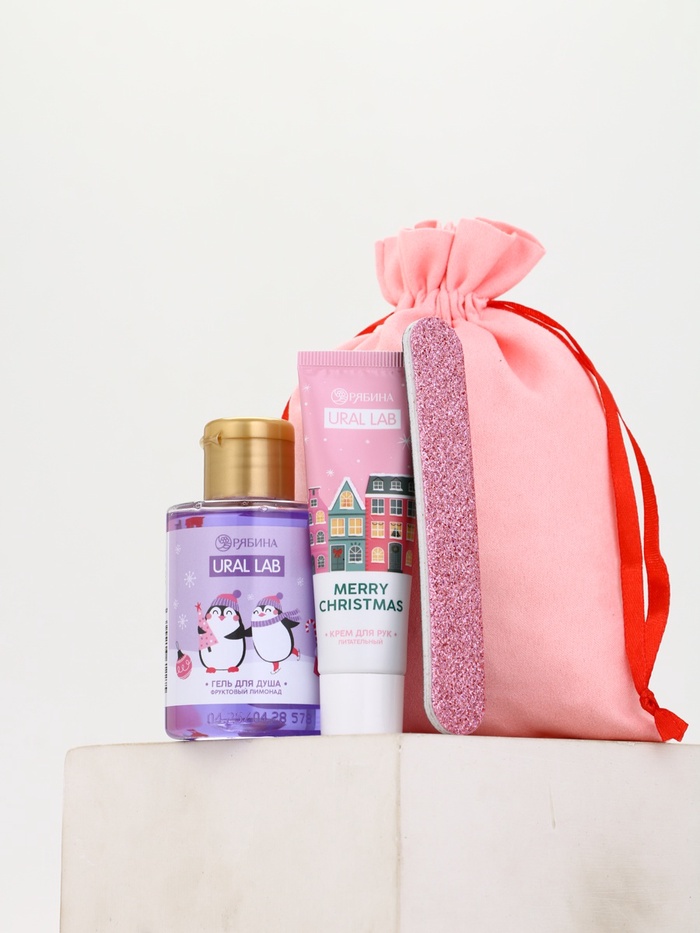 Технические характеристики Подарочный набор косметики в мешке: крем для рук, пилочка, гель для душа, аромат фруктовый лимонад, URAL LAB