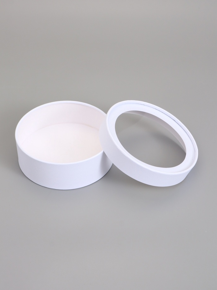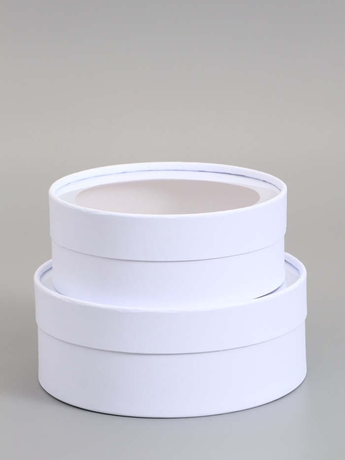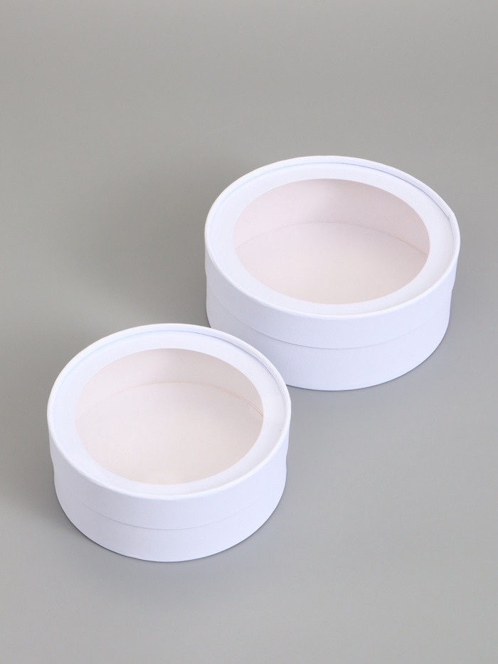 Подарочный набор коробок 2 в 1 круглых, "Белая" с окном, 21 х 7 - 18 х 6 см
