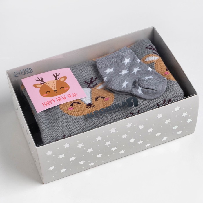 Подарочный набор Крошка Я «Олененок», плед 90х90см, носки 10-12 см