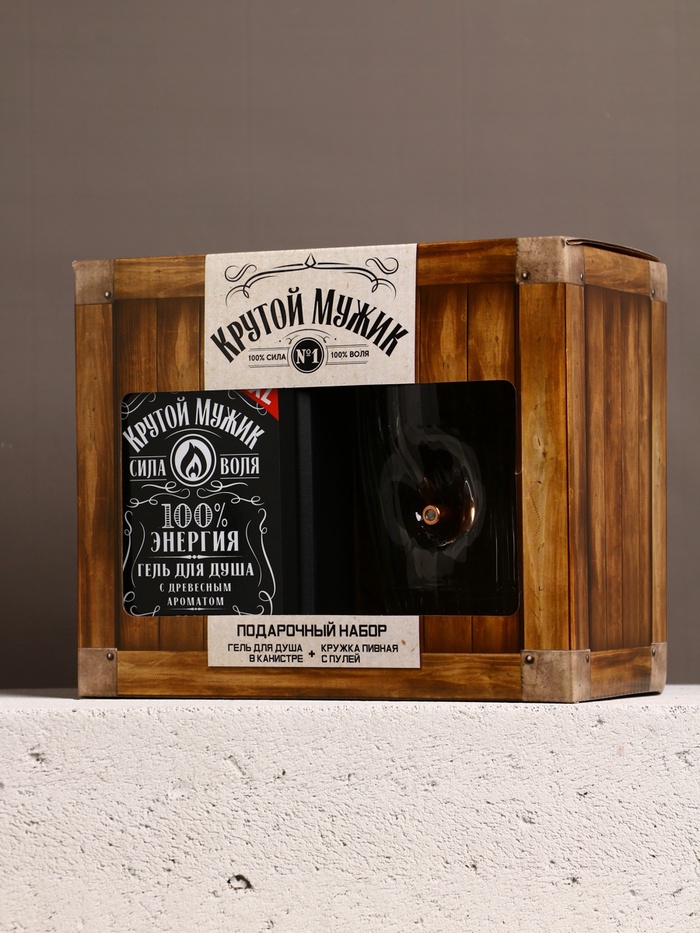 Технические характеристики Подарочный набор «Крутой мужик«, гель для душа канистра 500 мл и стакан с пулей, HARD LINE