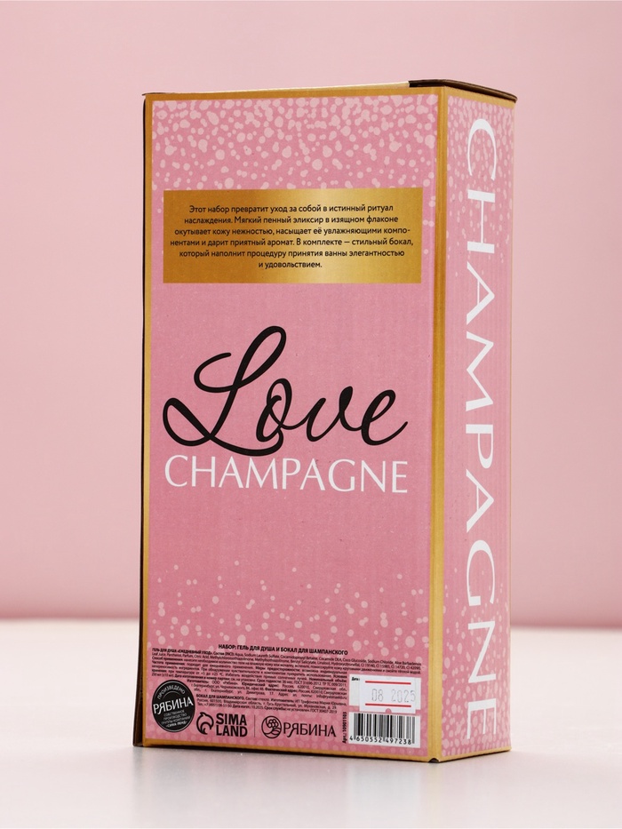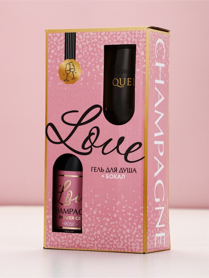 Подарочный набор LOVE, гель для душа и бокал для шампанского, Чистое Счастье