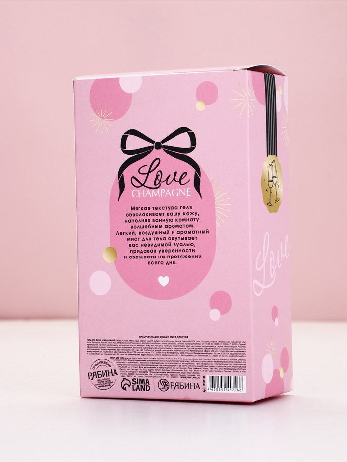 Технические характеристики Подарочный набор «Любовь», гель для душа шампанское и мист для тела, Чистое Счастье