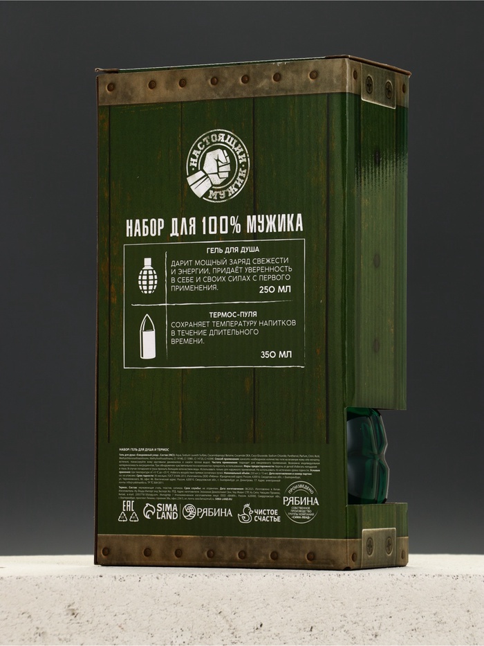 Технические характеристики Подарочный набор мужской «№1», гель для душа граната и термос - пуля, Чистое счастье